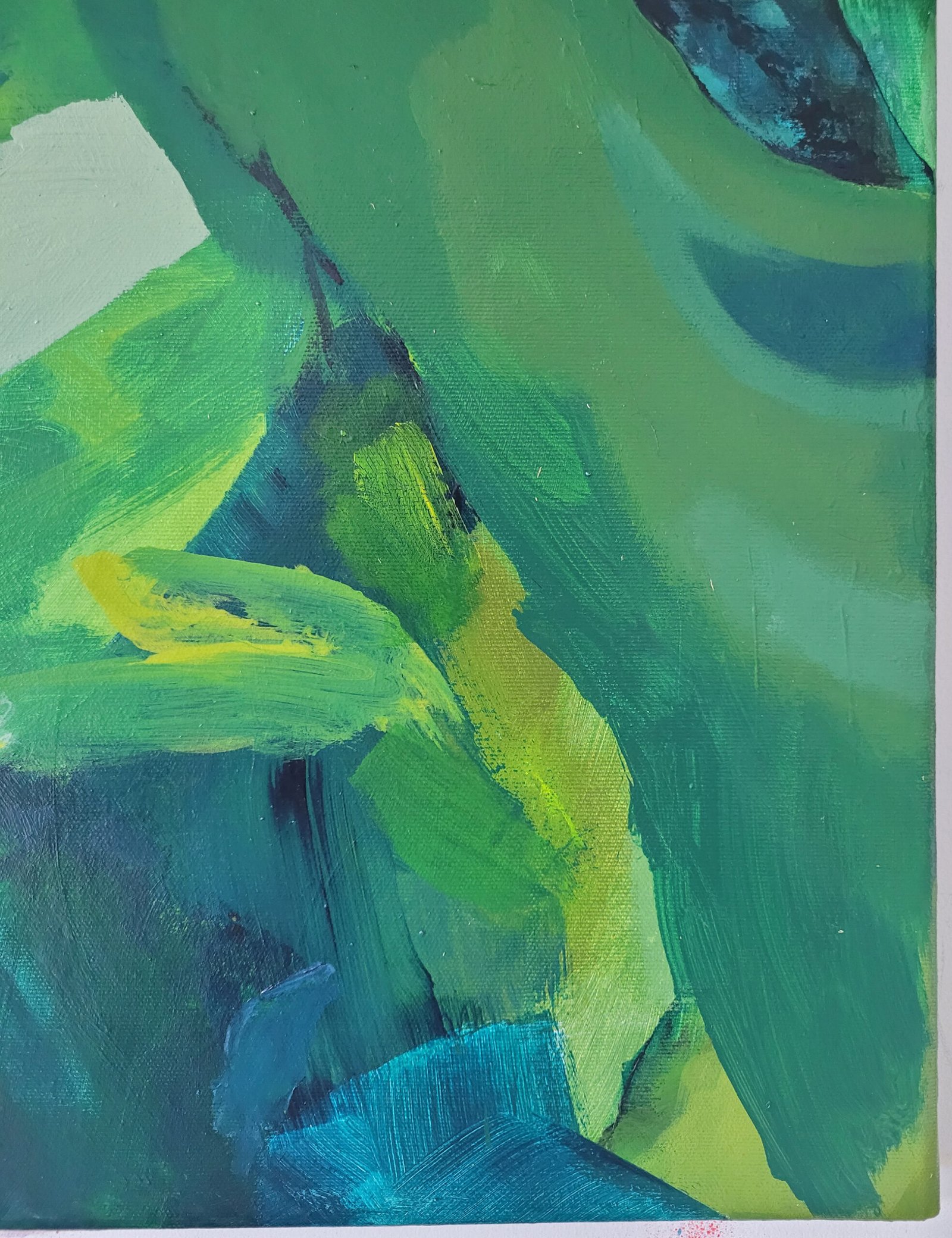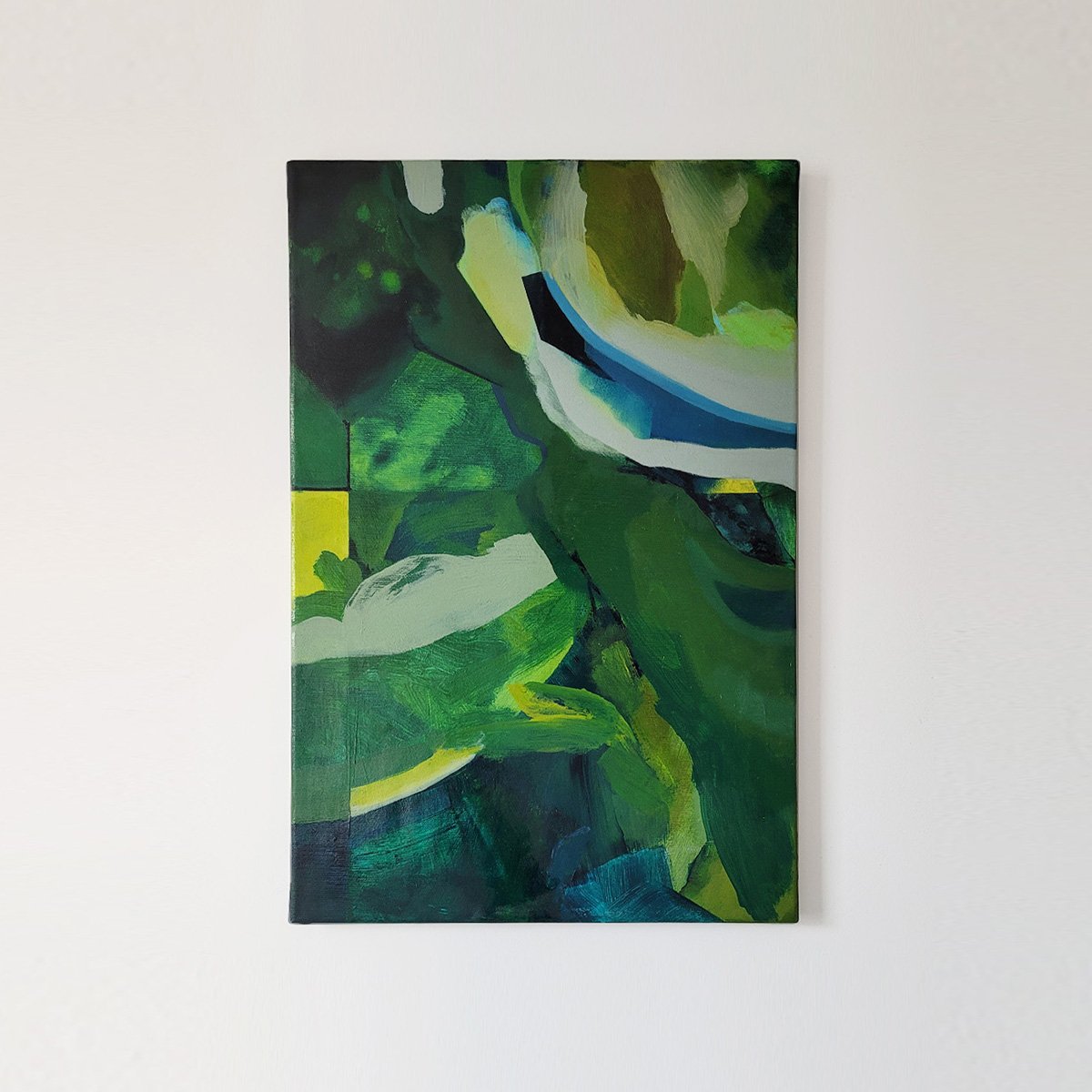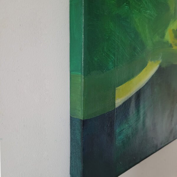 Pod Skrzydłami Zieleni rok: 2025materiał: farby akrylowe na płótnie+ wernikswymiary: 40 x 60 cmcena: 400 złdostępny