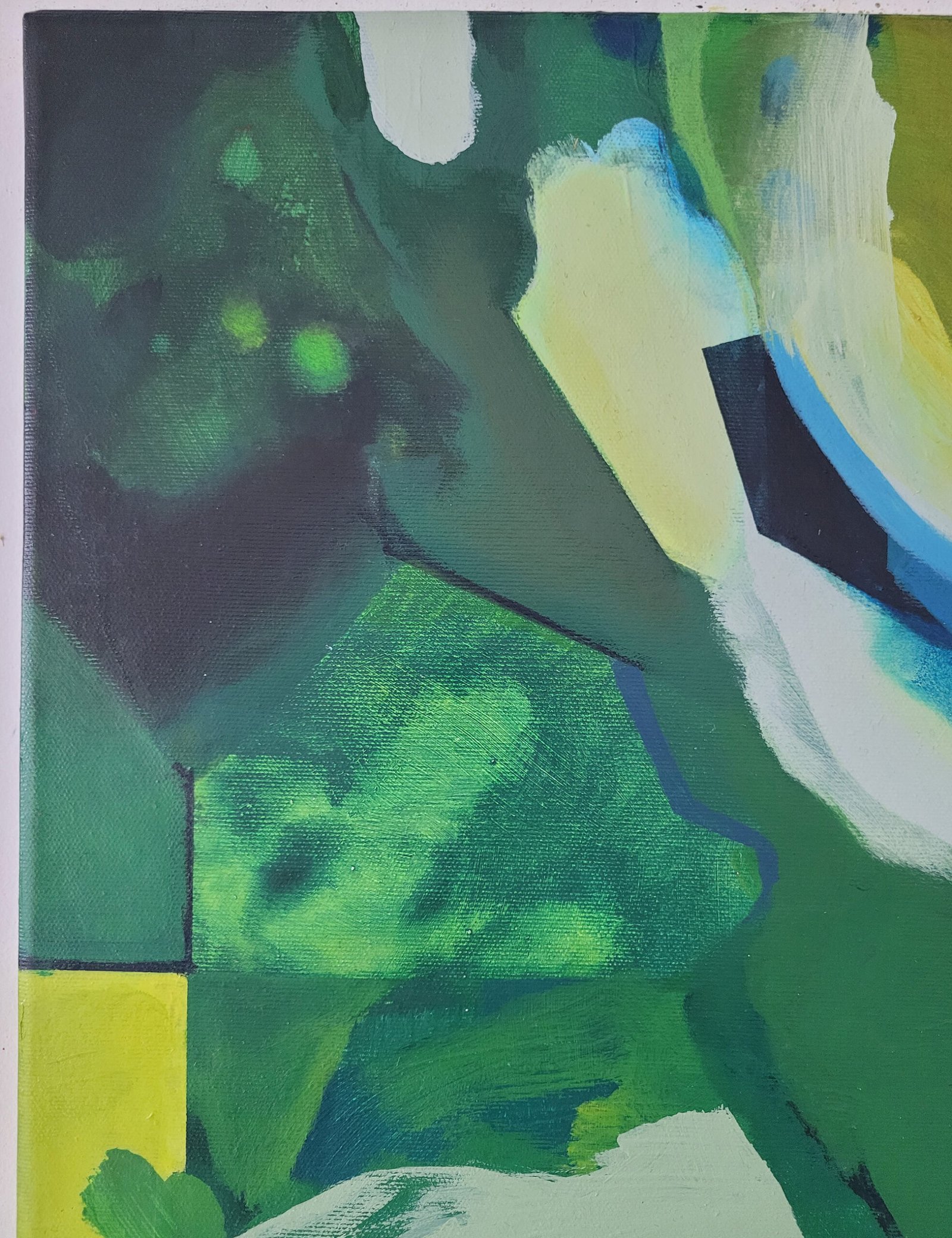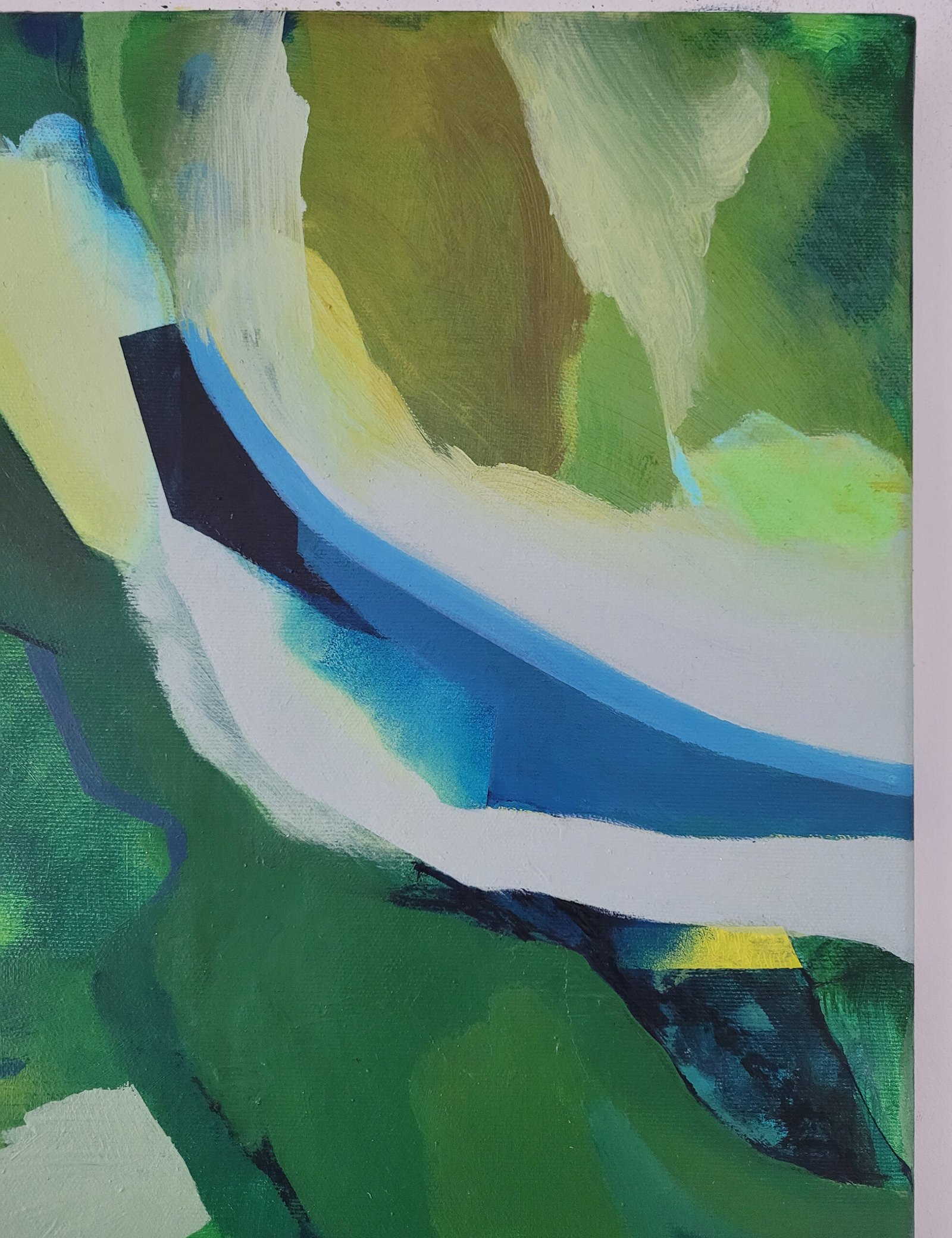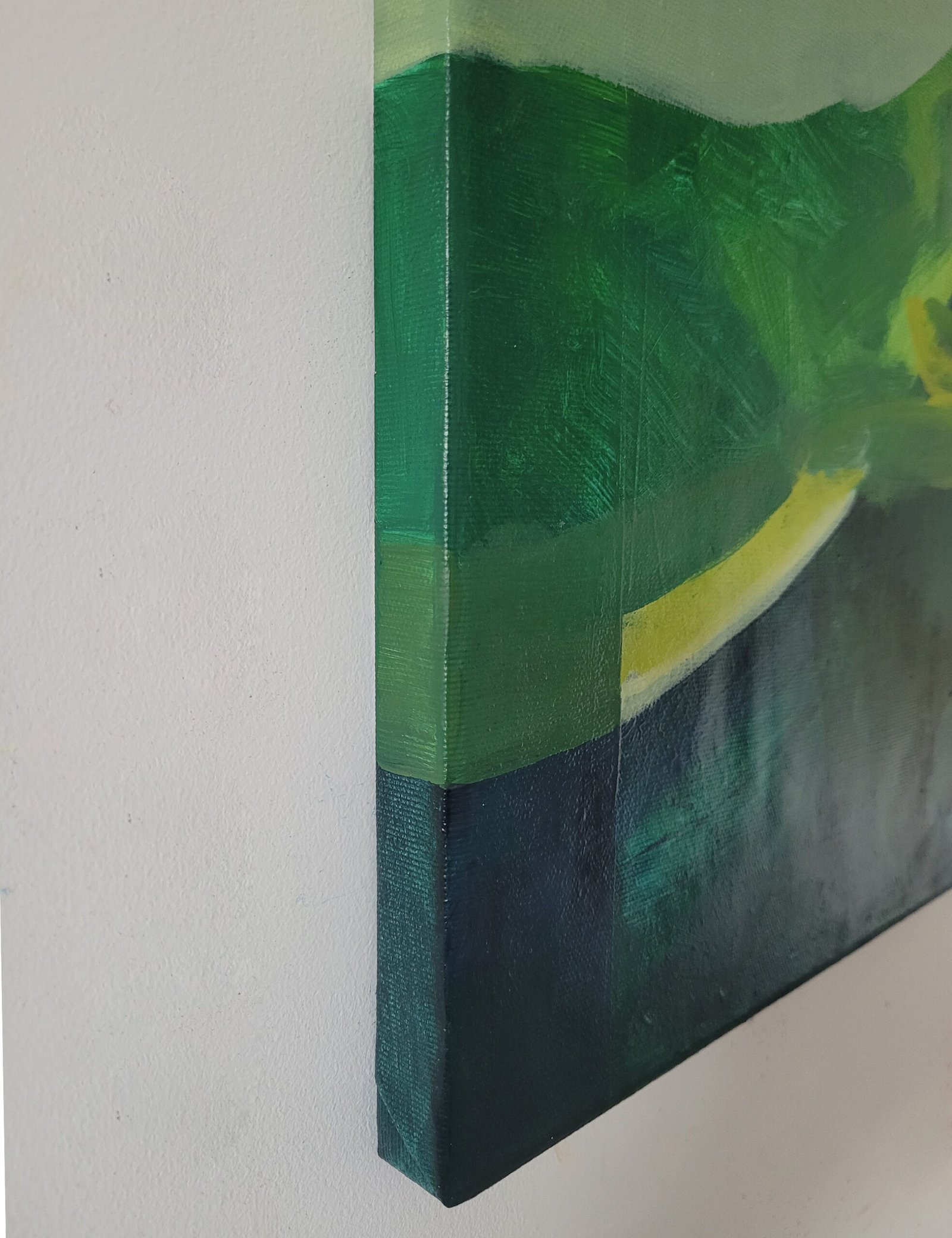 Pod Skrzydłami Zieleni rok: 2025materiał: farby akrylowe na płótnie+ wernikswymiary: 40 x 60 cmcena: 400 złdostępny